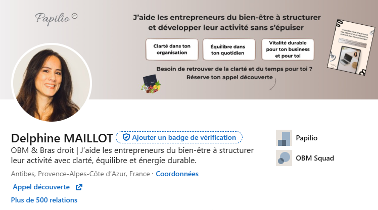• J'ai suivi une formation d'Assistante Digitale avec Sandie Verdure, une référence dans ce métier, et je poursuis mon accompagnement auprès d'OBM SQUAD (OBM ELITE), qui forme les meilleur(e)s Online Business Managers de France (N°1).